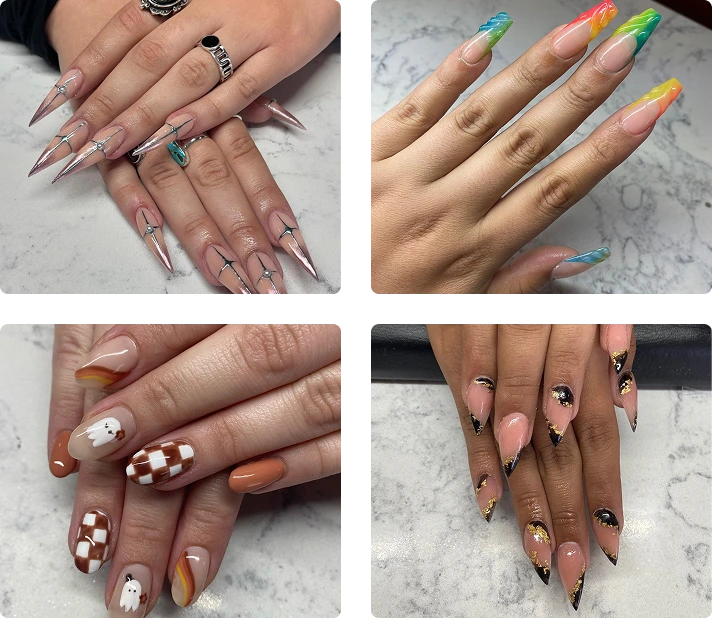 Express yourself with bold, elegant, or playful designs crafted by our professional nail artists.